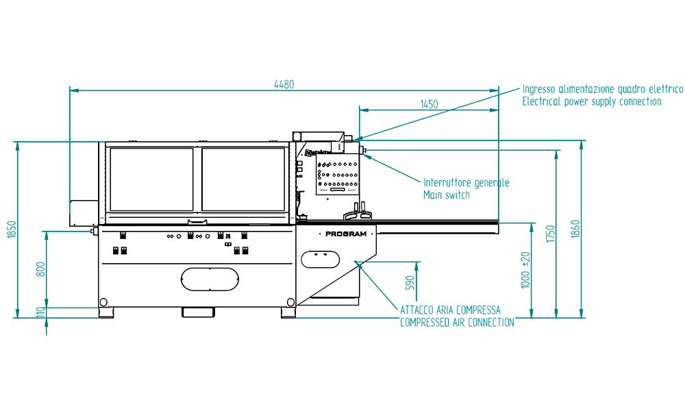 The PROGRAM model has been designed and produced to work 300 mm wide wood and a height of 180 mm, with the optional possibility to extend the height to 200 mm.