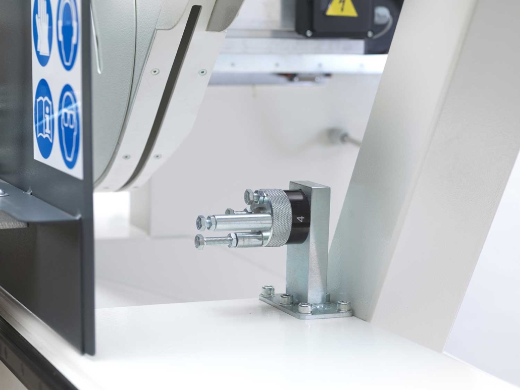 In the Elite 400 version, the machine comes complete with a spindle with a tool change system by means of a ring nut; its 90 mm reach under the work surface allows the housing of a variety of tools for quick work change.
