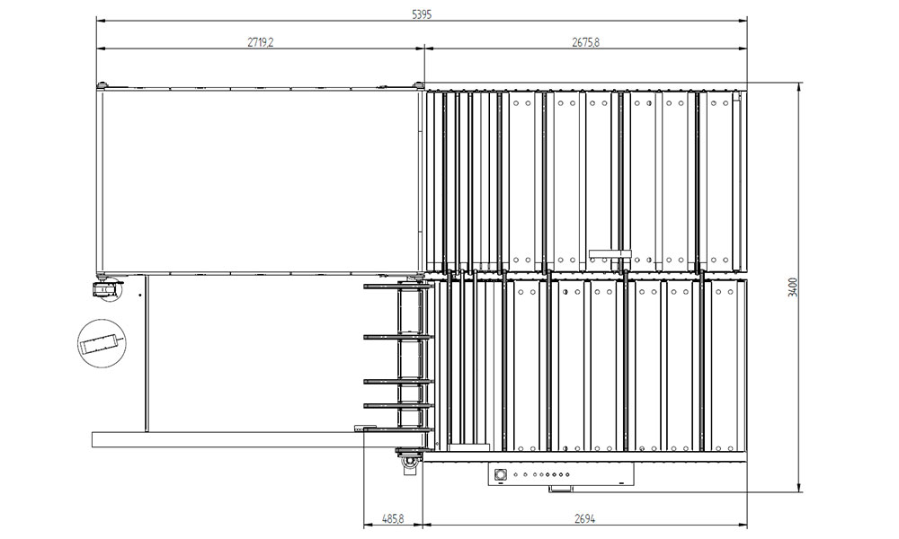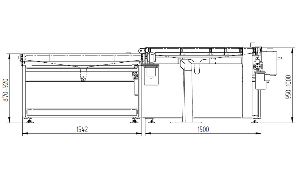 At the end of the stroke, the workpiece reaches the operator via the conveyor belt (with a width of 1500 mm and a length of 2700 mm).