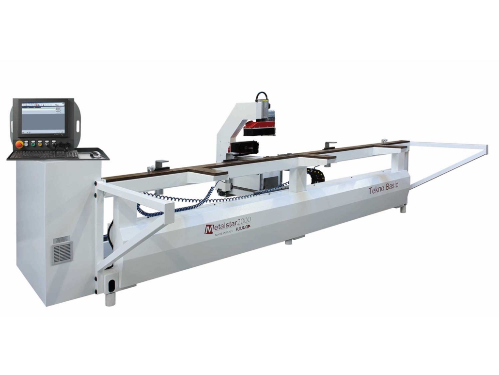 TEKNO BASIC to frezarka – wytaczarka do zawiasów z 3/5 sterowanymi i interpolowanymi osiami, sterowana silnikami bezszczotkowymi.